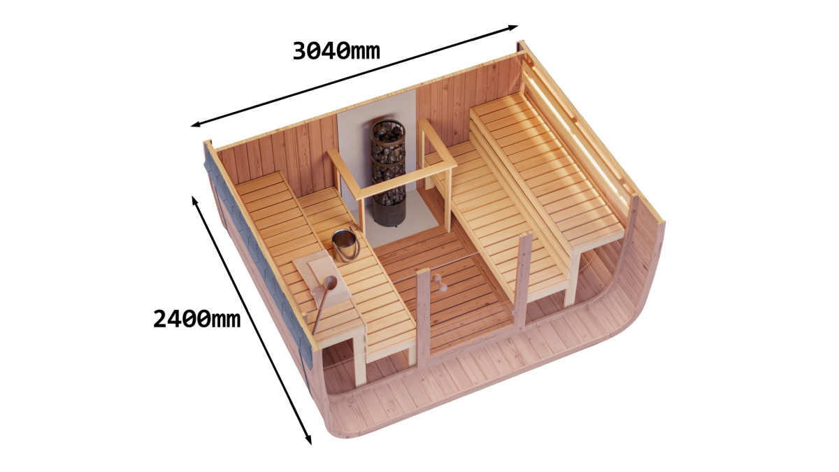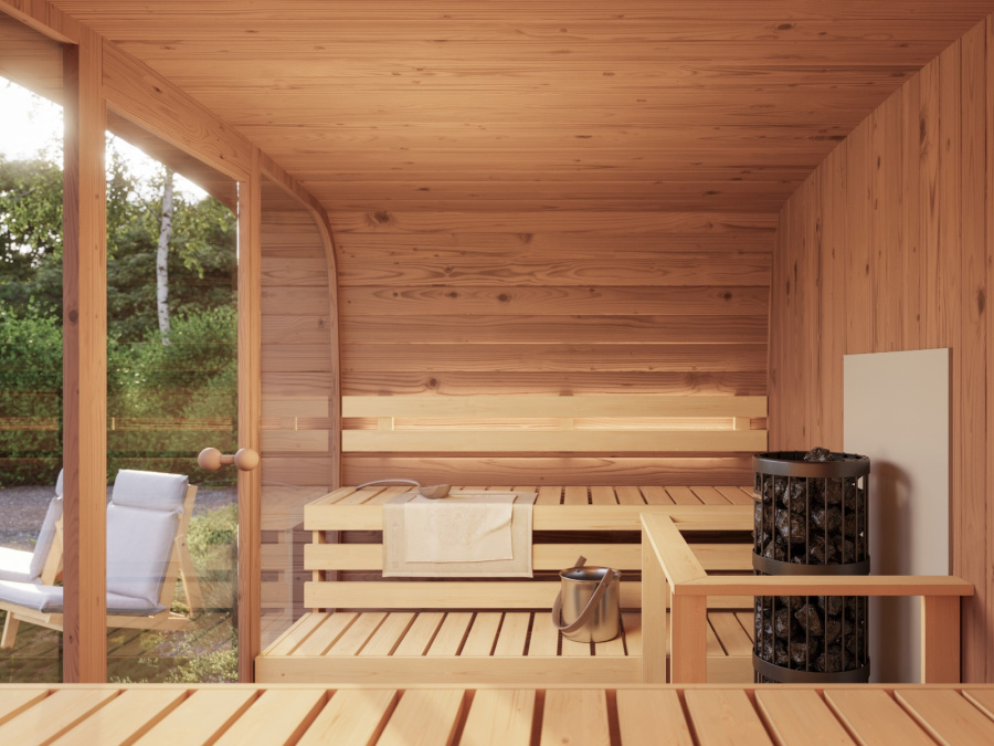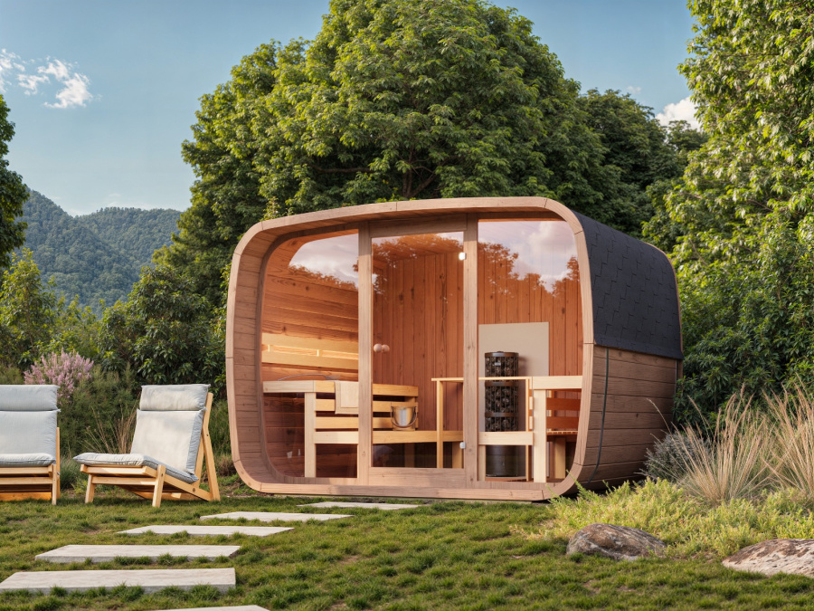 Romslig CUBUS-badstue (2,4 × 3 m) med ett rom.